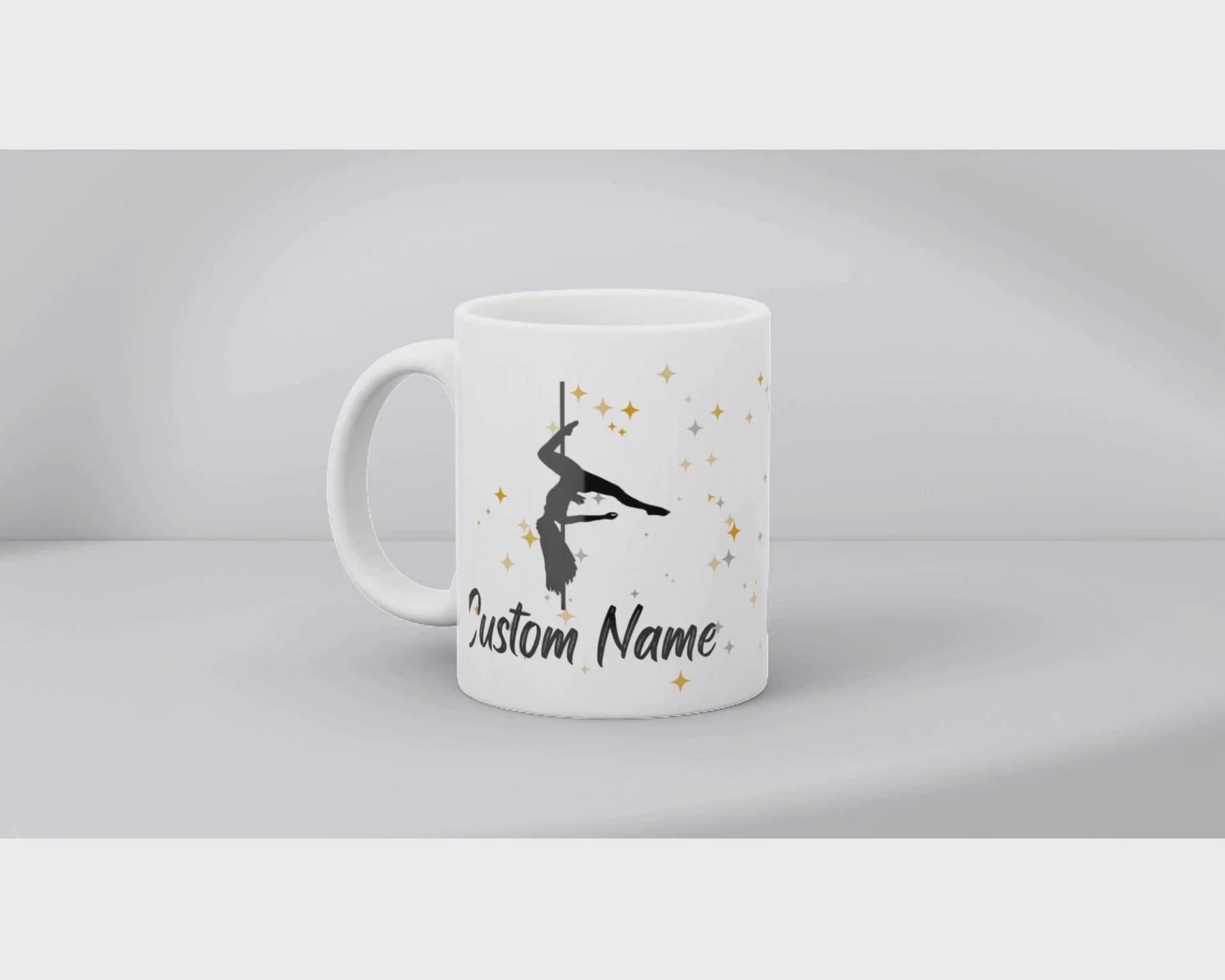 Give the ultimate personalised gift for pole dance lovers with our Personalised Name Pole Dancer Gift Mug! This elegant 11oz ceramic mug can be customized with your name, your friend’s name, or even your daughter’s name, making it a unique and thoughtful present. Featuring a stylish pole dancer silhouette and stars, this mug is both functional and fashionable—perfect for sipping your morning coffee or enjoying a cozy drink after pole class. Made with high-quality ceramic, it's lead-free, microwave, dishwasher, and freezer-safe, with a matte non-slip base for stability.