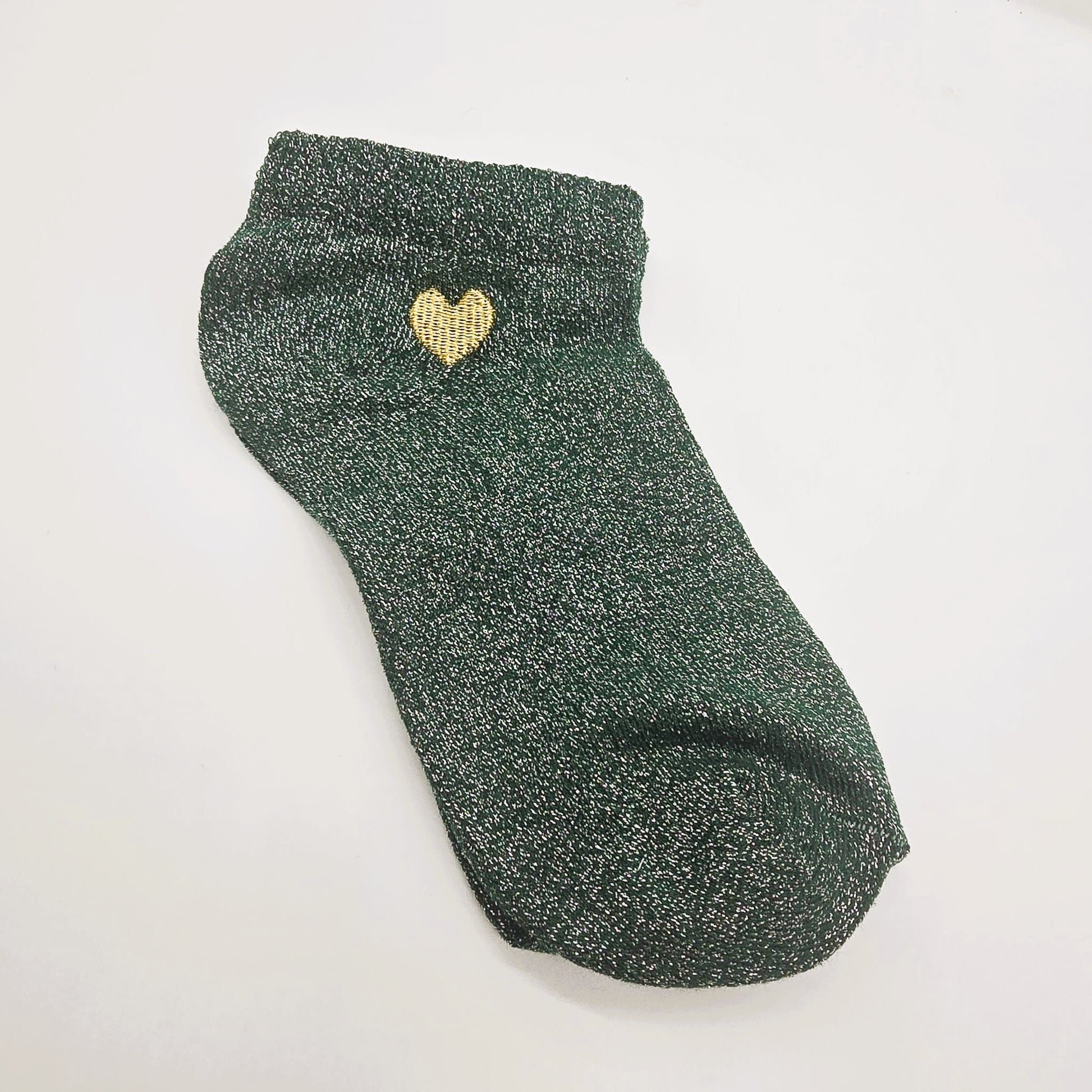 Green Glitter Pole Dance Socks – Embroidered Heart, Sweat-Absorbing